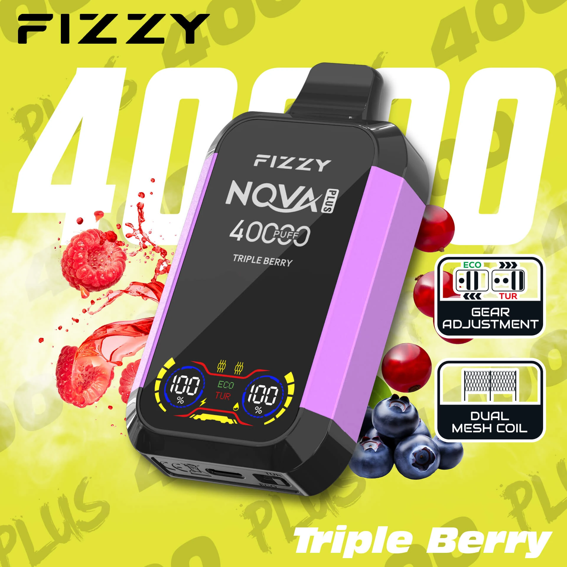 Fizzy Nova Plus 40000 40K Puffs Original Edition Dual Mesh LCD Display Disposable Vape EU Warehouse