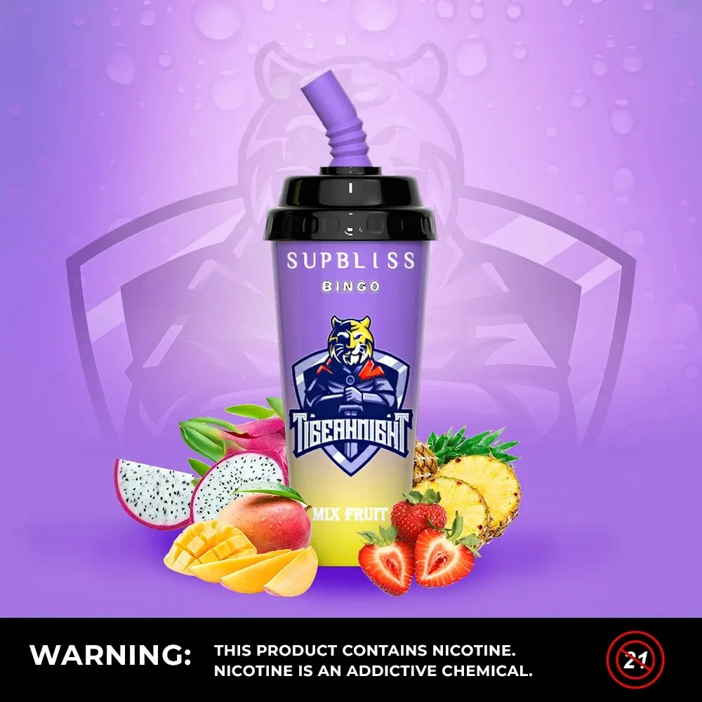 The Supbliss Bingo 8000 stands out with its unique, ergonomic cup shape that fits perfectly in the palm of your hand. Its soft, straw-like mouthpiece provides a comfortable draw, mimicking the feel of sipping your favorite beverage. Despite its small and “cute” appearance, it is built with high-quality, food-grade materials and houses a powerful internal system capable of delivering 8,000 flavorful puffs(Click to select more randm tornado vapes).